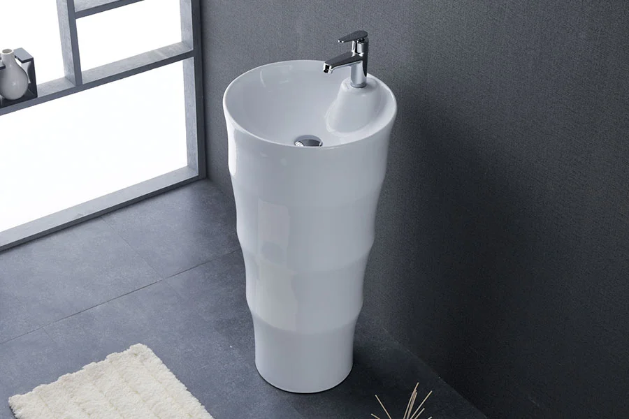 A wall basin with pedestal combines elegant design and functional support, concealing plumbing while enhancing the overall aesthetics of the bathroom with a clean, timeless look.
